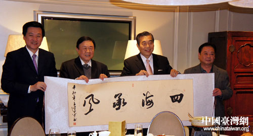 喬延春副主席(左二)與臺(tái)北世界貿(mào)易中心王志剛董事長(zhǎng)(右二)。圖片來(lái)源:山東省臺(tái)辦