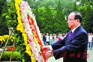 昨日,在廣州市政協(xié)主席林元和的陪同下,中國國民黨副主席蔣孝嚴(yán)到廣州黃花崗七十二烈士墓拜祭,并應(yīng)邀題字“浩氣長存”。蔣孝嚴(yán)表示,在辛亥革命100周年之際,來拜祭黃花崗七十二烈士墓是非常值得紀(jì)念的事情,影響深遠(yuǎn)。