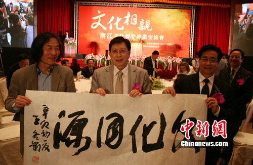 這是一場跨越海峽的“相親”會,主角是來自浙江和臺灣的文化創(chuàng)意精英,而媒人陣容也相當(dāng)豪華,正在臺灣參訪的中共浙江省委書記趙洪祝、臺灣文化總會會長劉兆玄,臺北世貿(mào)中心董事長王志剛均出席“做媒”。