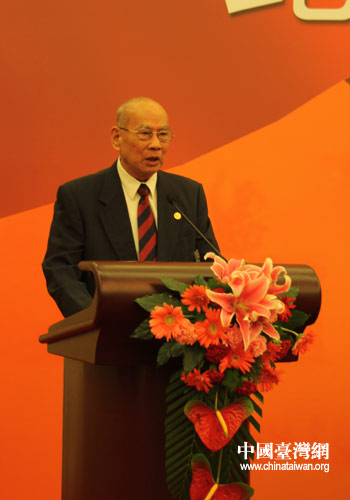 由黃埔軍校同學(xué)會(huì)和中國廣播電視協(xié)會(huì)聯(lián)合主辦的紀(jì)念辛亥革命100周年黃埔論壇5日上午在北京人民大會(huì)堂召開,黃埔軍校同學(xué)會(huì)會(huì)長林上元在論壇上發(fā)言。(中國臺(tái)灣網(wǎng) 李丹 攝)