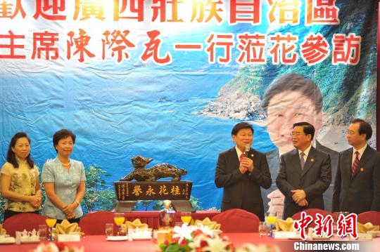 陳際瓦表示,近年來,廣西臺灣兩地經貿、文化、醫療衛生等各方面的交流合作已頗具規模。臺灣政商界高層參訪廣西越來越多,兩地人員交往日趨頻繁。每年到廣西旅游、考察、參訪的臺胞超過50萬人次,廣西居民赴臺人數達2.3萬人次,與3年前比增加3倍。
