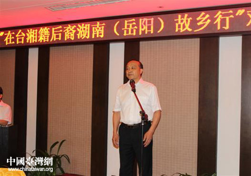 中國臺(tái)灣網(wǎng)9月3日岳陽消息 日前,由湖南省臺(tái)辦主辦、岳陽市臺(tái)辦承辦“2012在臺(tái)湘籍后裔湖南(岳陽)故鄉(xiāng)行”活動(dòng)在岳陽舉行。來自祖國寶島的53名湘籍后裔在臺(tái)灣湘陰同鄉(xiāng)會(huì)會(huì)長(zhǎng)黃國暉女士的率領(lǐng)跨越海峽抵達(dá)岳陽。省臺(tái)辦副廳級(jí)紀(jì)檢員蒲祖泉赴岳陽會(huì)見臺(tái)灣湘籍后裔故鄉(xiāng)行全體鄉(xiāng)親并在歡迎儀式上致辭。