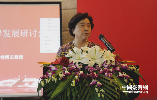 海峽兩岸關(guān)系協(xié)會副會長兼浙大臺灣研究所所長王在希主持研討會。(中國臺灣網(wǎng) 高斯斯 攝)