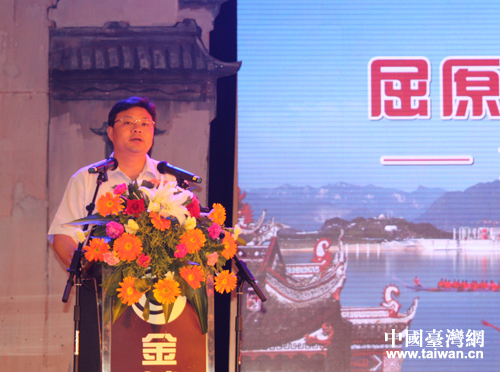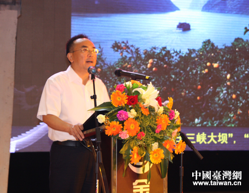 “屈原秭歸 三峽大壩”旅游產(chǎn)品形象發(fā)布會(huì)在秭歸縣舉辦,秭歸縣縣長(zhǎng)盧輝在會(huì)上致辭。(中國臺(tái)灣網(wǎng) 李杰 攝)