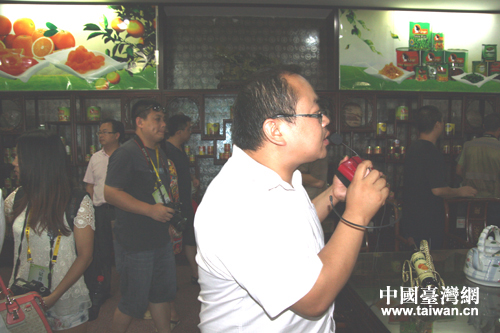 記者團(tuán)參觀湖北省農(nóng)業(yè)產(chǎn)業(yè)化重點(diǎn)龍頭企業(yè)——以臍橙加工為主要特色的秭歸屈姑食品有限公司。(中國臺(tái)灣網(wǎng) 李杰 攝)