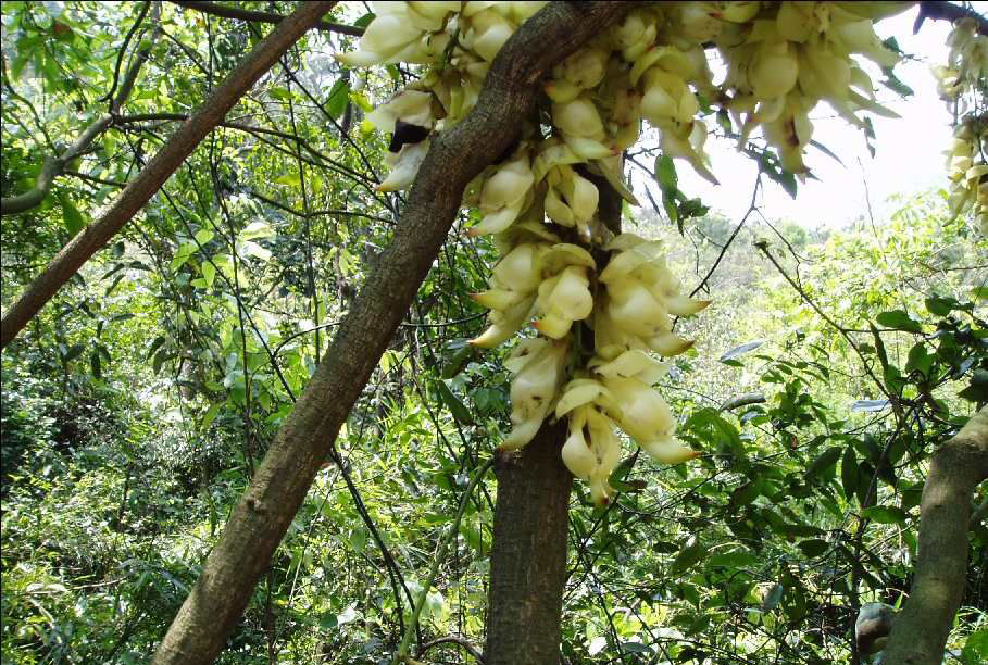 每年的三四月份,東莞清溪鎮大王山漫山遍野的禾雀花就會競相開放,一串串酷似禾雀的花朵迎風搖曳,極具有觀賞性。 李獲 攝