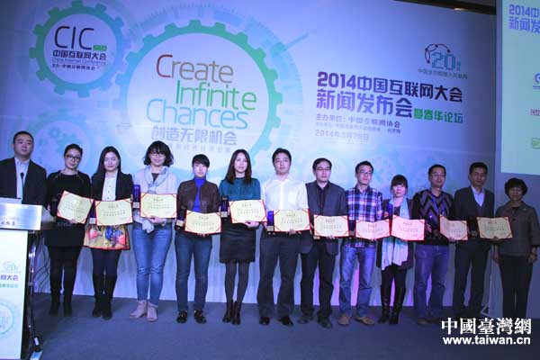 新聞發布會上,2014中國互聯網大會對戰略合作伙伴進行授牌。(中國臺灣網 王偉 攝)