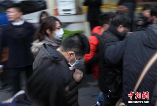 2月5日下午,臺灣復興空難罹難大陸旅客家屬搭機抵達臺灣桃園機場后,搭車趕往臺北市第二殯儀館確認遇難者身份。圖為大陸旅客的親屬在陪護下步入殯儀館。中新社發 路梅 攝