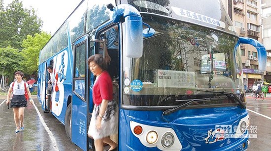 5月27日,大陸無錫的高端團赴臺,游覽車上還特別標明“首發(fā)高端團”。資料照片:臺灣“中時電子報”
