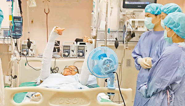 18歲的傷者阿弘,80%燒燙傷面積,如今已漸漸恢復體力。 中央社