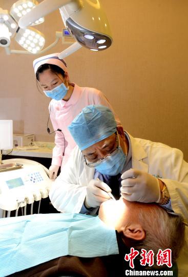 12月27日,福州市口腔醫學會常務理事、臺商黃煒峻在當日開業的臺資康德口腔門診聯盟旗艦總部內,為首位就診的牙科患者進行診治。 記者劉可耕 攝