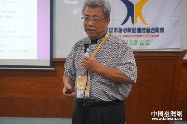 高雄市身心障礙團體聯合總會代表黃國良發表演講。(中國臺灣網 雍紫薇 攝)