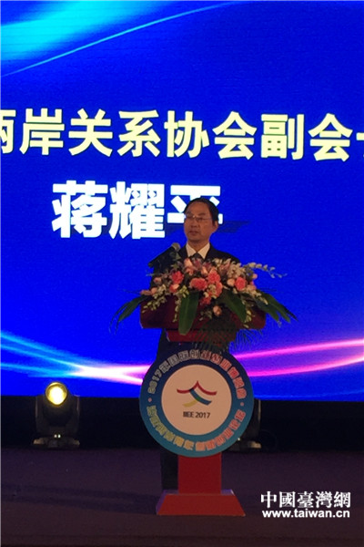 海峽兩岸關(guān)系協(xié)會(huì)副會(huì)長(zhǎng)蔣耀平致辭。(中國(guó)臺(tái)灣網(wǎng) 王亞靜 攝)