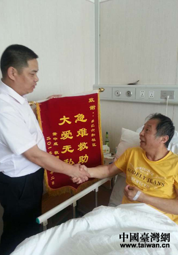 見他思鄉(xiāng)之情深切,濱江區(qū)臺辦又積極聯(lián)系安排其臺灣親屬來杭事宜等。6月8日派人派車陪同蕭老前往機場,由于機場的醫(yī)生在檢查后仍認(rèn)為不適合登機,蕭老又重新回到了醫(yī)院治療。在這種情況下,社區(qū)依然每天堅持派人去醫(yī)院看望和陪護,做他的思想工作,讓其安心養(yǎng)病治療,有時一天要跑好幾次醫(yī)院,讓他在走向絕望的路上看到了希望。半月來,在社區(qū)工作人員熱情關(guān)心和武警醫(yī)院的精心治療下,蕭老的病情大有好轉(zhuǎn),血壓也基本正常,以前不能動的左腳也有了感覺。