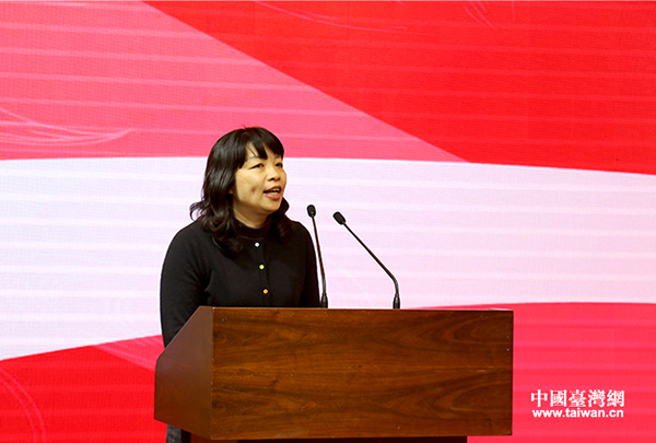 中國(guó)宋慶齡基金會(huì)港澳臺(tái)事務(wù)部部長(zhǎng)陳愛(ài)民致辭。(中國(guó)臺(tái)灣網(wǎng) 齊昕 攝)