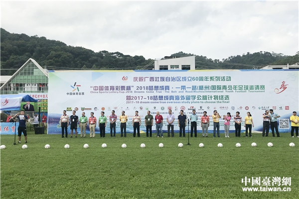 2018年夢想成真·一帶一路(梧州)青少年足球邀請賽暨2017-18夢想成真海外留學選拔公益計劃終選活動開幕現場。(圖片來源:梧州市臺辦)