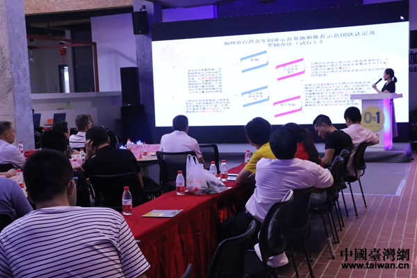 交流會上,福州市臺辦經濟處副處長徐嫻從適用對象、適用范圍和政策內容三個方面,向大家講解“66條實施意見”。福州市臺辦經濟處處長黃海森對臺灣青創工作進行了總結。他表示,近幾年福州對需要幫助的臺灣創業青年進行了“政策支持和精準扶持,”接下來將繼續鼓勵臺灣青年來榕創業。
