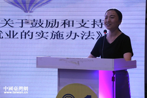 福州市臺辦經濟處副處長徐嫻向大家講解“66條實施意見”。(中國臺灣網 張露露 攝)
