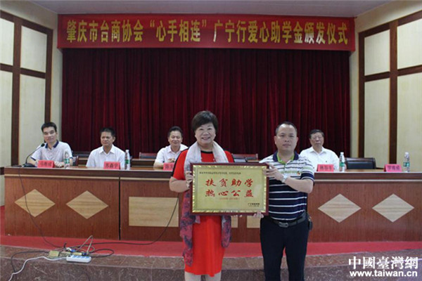 中國臺灣網8月29日肇慶訊 為圓貧困家庭學子一個讀書夢,傳遞兩岸情。8月21至22日,廣東省肇慶市臺灣同胞投資企業協會“心手相連”愛心助學工作委員會的愛心爸媽們分別到廣寧、四會、鼎湖、高要舉行愛心企業資助貧困生見面會暨助學金發放儀式。肇慶市臺商協會林谷豐會長、劉何玉鈴輔導會長,市臺商協會婦女聯誼會張林素津副會長,市臺辦蘇森宇副主任,陸美燕女士等人出席活動。