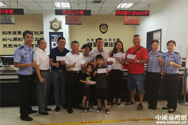 當日早上7點多,臺胞黃光志一家就被父親黃錦勳的電話吵醒,催促全家人到派出所申辦居住證。可以辦理居住證對于已經到重慶二十幾年的黃錦勳顯得有些激動。9點鐘,在黃錦勳的帶領下,祖孫三代7人就到了九龍坡區楊家坪派出所。辦理窗口的民警姜秋芝根據相關政策,熱情為他們辦理居住證,僅用時30分鐘便辦理完畢。黃錦勳說:“居住證的出臺方便了他們這些常住大陸的臺灣同胞,對往后在大陸工作和生活帶來極大的便利,今后一定會努力為重慶經濟發展做出新的更大的貢獻。”