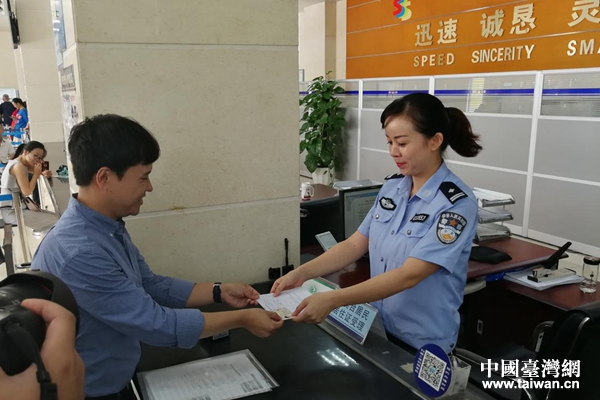 9月1日上午,在瀘州市公安江陽分局龍透關派出所內的業務辦理窗口,臺灣同胞趙均彧從民警手中接過了一張“港澳臺居民居住證領取憑證”,在20個工作日后,他將成功領取港澳臺居民居住證!芭_灣居民來往大陸通行證和大陸的居住證在證件號字碼上是不同的,所以,我們在選擇坐高鐵、飛機的時候,時常會遇到無法到站自助取票的困難,另外,辦理港澳臺居民居住證后,對我將來購買基金、保險、甚至購房都會有很大的幫助。”趙均彧說,他很早就開始關注港澳臺居民居住證的辦理情況,并主動與瀘州市臺辦進行聯系,希望自己第一時間就能辦理該證。