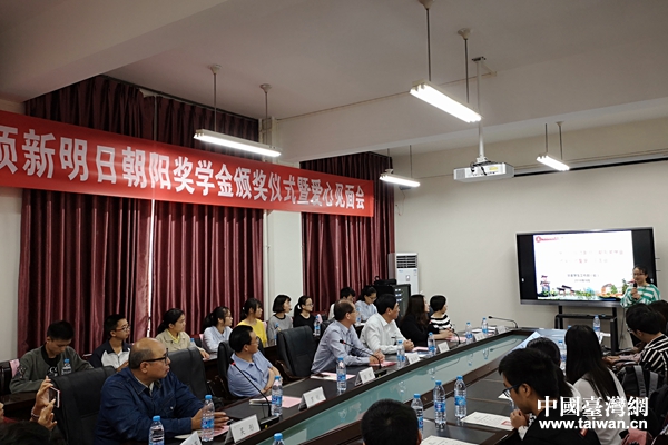 四川大學(xué)2018年頂新明日朝陽獎學(xué)金頒獎儀式現(xiàn)場。(圖片來源:四川省臺辦)