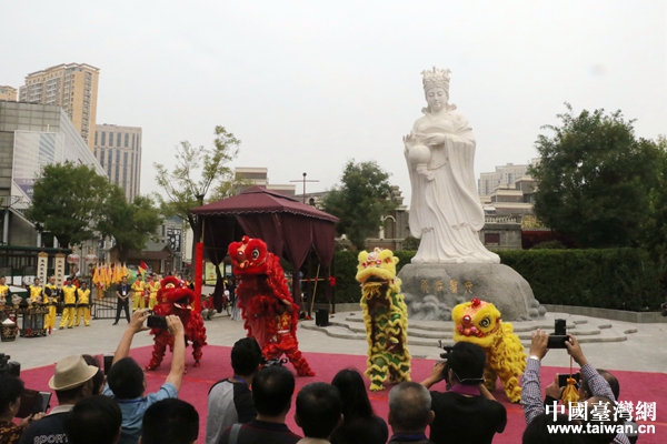 河西華興舞獅團的舞獅表演,拉開皇會展演的序幕。(中國臺灣網 張露露 攝)