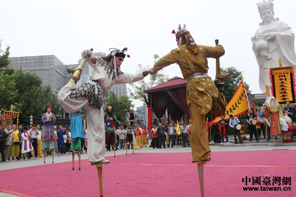 津西曹莊同利文武高蹺老會帶來的精彩高蹺表演。(中國臺灣網 張露露 攝)