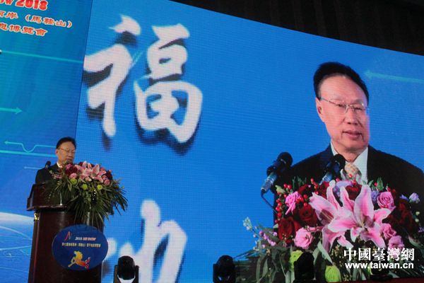 中國臺灣網(wǎng)10月27日馬鞍山訊 (記者 王莉婷)10月26日,2018第七屆海峽兩岸(馬鞍山)電子信息博覽會在馬鞍山市會展中心舉行開幕儀式。馬鞍山市委書記張岳鋒、海峽兩岸關(guān)系協(xié)會副會長李亞飛、臺灣電電公會理事長郭臺強等領(lǐng)導和嘉賓出席開幕式并致辭。