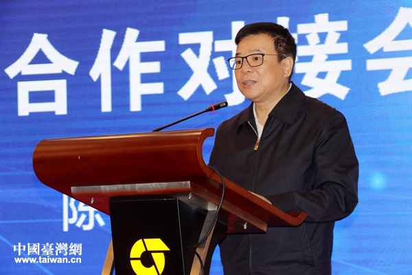 湖南省人民政府副省長陳飛在對接會上致辭。(中國臺灣網 趙苗青 攝)