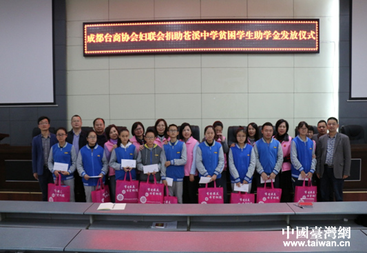 成都臺商協會婦聯會一行到蒼溪職中走訪慰問受資助貧困學生。(圖片來源:廣元市臺辦)