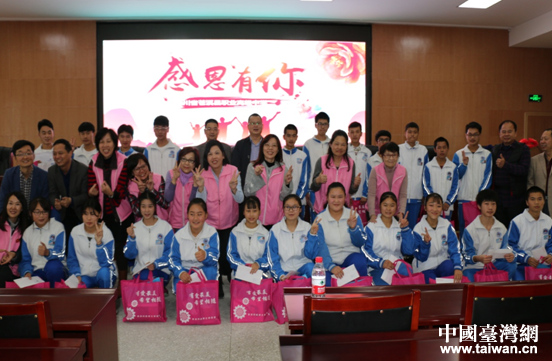 中國臺灣網11月1日廣元訊 10月24日至25日,成都臺商協會婦聯會一行13人在會長詹玉滿的帶領下,到廣元市蒼溪中學、蒼溪縣職業高級中學、昭化區衛子小學走訪慰問受資助貧困學生,向他們發放生活資助金和慰問品,并與學生們交流互動。