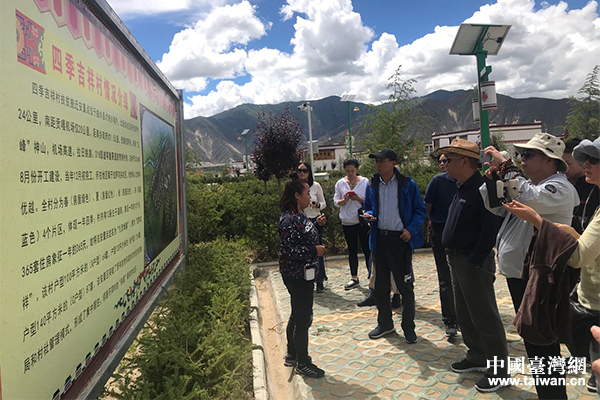 四季吉祥村第一書記索朗央吉向到訪的海內(nèi)外媒體團介紹新村建設(shè)發(fā)展情況。(中國臺灣網(wǎng) 普燕 攝)