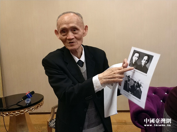 高秉涵向記者展示幼時的他和母親的合照。(中國臺灣網 郭曉康 攝)