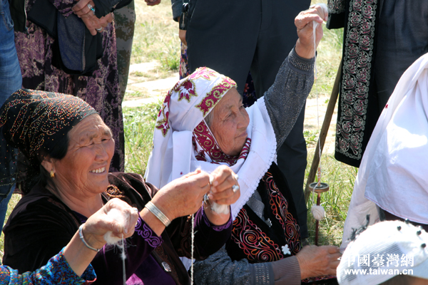 阿克奇村老人在捻羊毛線。(中國(guó)臺(tái)灣網(wǎng) 王怡然 攝)