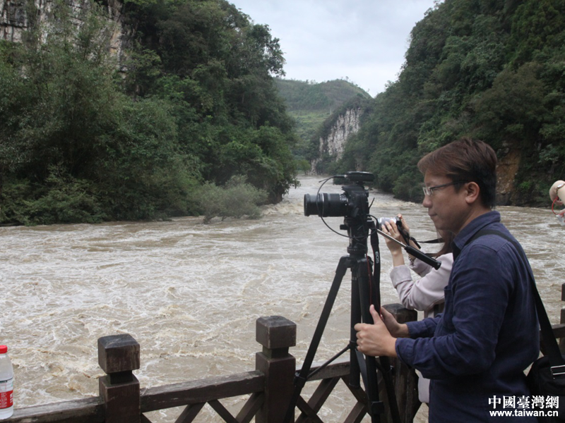 臺灣NOWnews影音中心主任吳文勝拍攝黃果樹瀑布。(中國臺灣網 李航 攝)