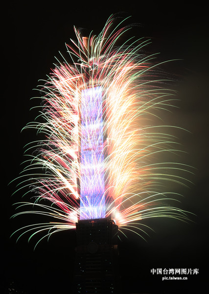 2018臺北101跨年煙火從跨年前1分鐘開始施放,持續長達6分鐘,搭配由近14萬顆LED組成的TPAD燈網演出。(圖片來源:中國臺灣網圖片庫 攝影:陳立凱)