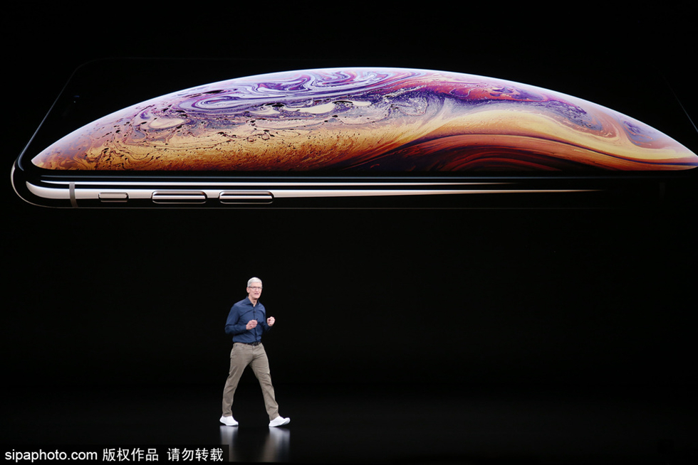 當地時間2018年9月12日,美國舊金山,蒂姆·庫克在位于加州庫比蒂諾的蘋果公司總部舉行蘋果年度產品發布會。6.5 英寸大號iPhone X叫 iPhone Xs Max ,5.8英寸的叫iPhone Xs,采用A12 處理器,這也是蘋果首款7nm制程處理器。分金銀灰三色,其中iPhone Xs屏幕動態范圍提升60%,支持更廣的音效外放;iPhone Xs Max屏幕458ppi ,分辨率 2688 x 1242,防水等級達IP68,新款iPhone將首次具備512G存儲空間。