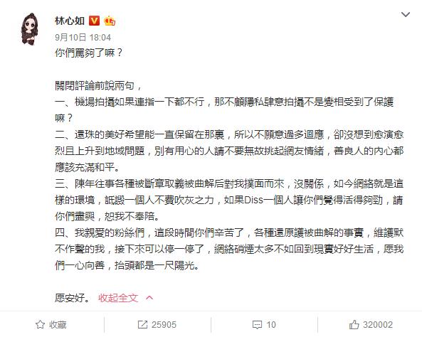從2013年到2017年這條舊聞就跟被策劃好了一樣一遍遍翻新炒作,這得是有多大仇多大怨才能如此堅持不懈年年黑?時隔十多年,周杰終于忍不了而澄清了。9月6日,周杰發微博怒懟林心如,并扯上兩岸話題,稱林心如在臺灣節目惡意詆毀大陸人。