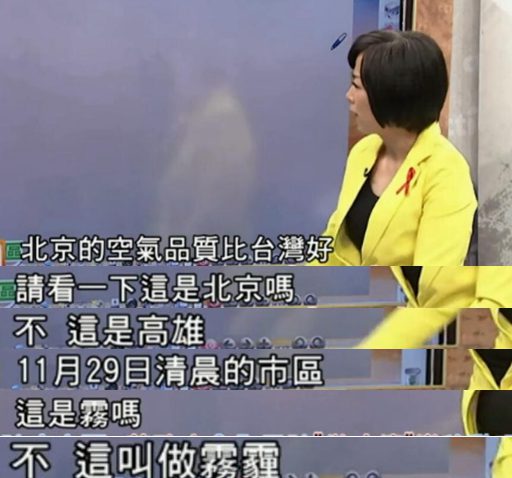 像前不久來北京工作的臺灣知名政論節目主持人黃智賢,就在節目中用一組圖對比了如今臺灣與北京在空氣質量上的差別,稱:北京的空氣品質真的比臺灣好。