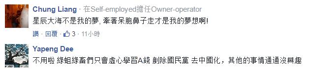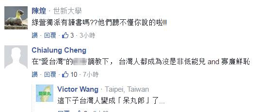 有些人嘲諷道,被“日本阿公呵護”的綠營獨派是看不懂這些的,他們愛“學習”的只是“剔除國民黨”和“去中國化”,其他的通通沒興趣,而一些臺灣民眾已在其“愛臺灣”的調教下變成“是非不分的低能兒”了。