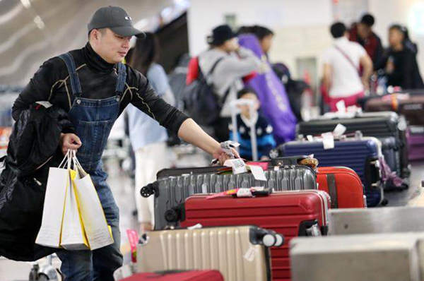 吳斯懷指出,蔡英文是吃了秤砣鐵了心,連臺灣人最在意的春節團圓,都可以棄臺商于不顧。圖為1名搭乘東方航空的旅客在桃園機場領取行李。(圖片來源:臺灣《中時電子報》)