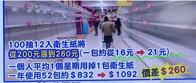 這還得從前兩天的新聞?wù)f起:據(jù)說臺(tái)灣三大衛(wèi)生紙供貨商日前證實(shí),3月起將陸續(xù)調(diào)漲衛(wèi)生紙價(jià)格,市面上多家“叫得出名字”的品牌衛(wèi)生紙也確定將調(diào)漲,而且漲幅還不是1%或3%,而是高達(dá)10%至30%間!之后有臺(tái)媒以一串抽取式衛(wèi)生紙200元(新臺(tái)幣,下同)計(jì)算,稱漲價(jià)后最貴可能變成260元,約等于一個(gè)便當(dāng)?shù)腻X;調(diào)漲時(shí)間點(diǎn)最快落在3月中旬,最慢4月前必漲。