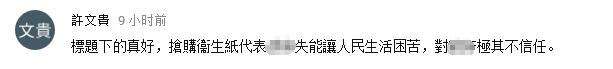 當(dāng)然,這場“衛(wèi)生紙之亂”除了有專家、學(xué)者、政治家的口誅筆伐外,大批臺(tái)灣網(wǎng)友也借勢表達(dá)了對蔡當(dāng)局的不滿,“若搞好經(jīng)濟(jì),衛(wèi)生紙漲價(jià),人民沒啥好怨,但經(jīng)濟(jì)沒搞好,民怨如火”、“果然蔡英文上臺(tái),人民蔡(菜)死”、“民進(jìn)黨不倒,衛(wèi)生紙不到”。