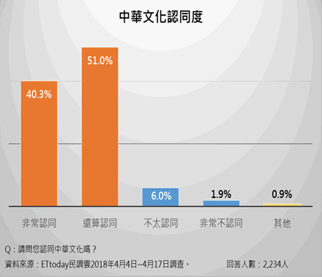 島內某民調顯示,高達91.3%受訪者認同中華文化。(圖片來源:ETtoday新聞云)