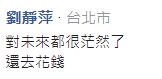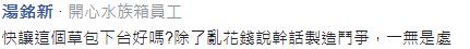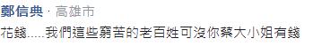 臺(tái)網(wǎng)友對(duì)此怒罵“今年花完,明年沒(méi)錢(qián)繳稅,你是要替我繳嗎?”“‘鬼島’悲哀!”“毫無(wú)儲(chǔ)蓄概念。”“她哪來(lái)的自信不會(huì)搞垮臺(tái)灣經(jīng)濟(jì)啊。”“干話筒”“到底在講什么啊!”“臺(tái)北股市現(xiàn)在一萬(wàn)多點(diǎn)叫人家趕快進(jìn)來(lái)買(mǎi)股票?是讓外資比較好出貨嗎?萬(wàn)一520當(dāng)天臺(tái)股下殺破九千點(diǎn),菜你要賠嗎?說(shuō)你們綠色‘臺(tái)獨(dú)黨’是詐騙集團(tuán),真的不假。”“這黨說(shuō)的話聽(tīng)不得,我看可能又要搞老百姓了!”