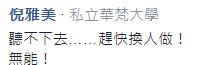 蔡英文此言一出即遭到臺(tái)灣網(wǎng)友痛批“自我安慰,阿Q想法,今年就是去不了,明年后年應(yīng)該也去不了。”“文青讀稿機(jī),再度發(fā)揮自慰精神。”“選一個(gè)敗家的來(lái)搞垮臺(tái)灣”“講的全是屁話!”