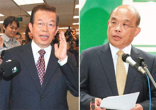 謝長廷(左)與蘇貞昌(右)被指是綠營年底縣長選戰(zhàn)最佳阻選員。(網絡圖)