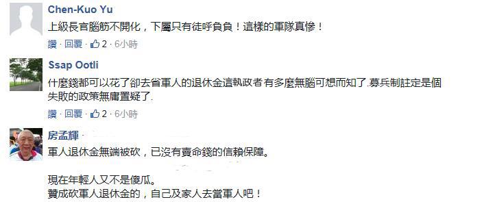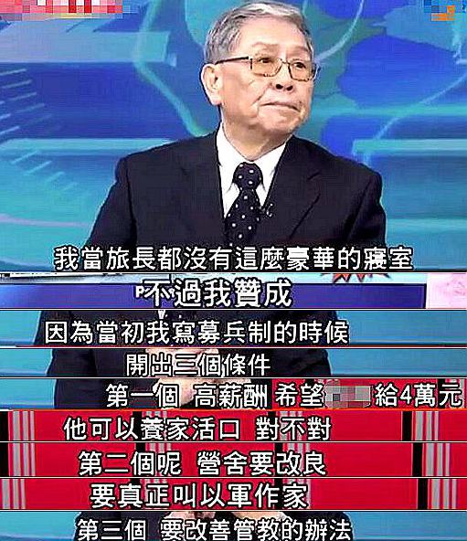 他還直言,自己在當(dāng)旅長(zhǎng)時(shí)都沒(méi)住過(guò)這么豪華的寢室。不過(guò),他隨即表示,如果蔡當(dāng)局真能把士兵宿舍改成這樣,自己絕對(duì)贊成。帥化民還透露,自己當(dāng)初在寫(xiě)“募兵制”時(shí)曾提過(guò)三個(gè)條件,而若真能被采納,那現(xiàn)在臺(tái)軍大概也不會(huì)面臨招不上人來(lái)的窘境了。