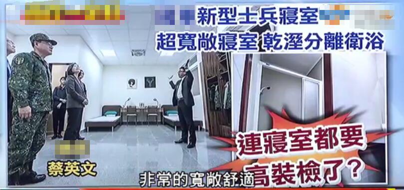 據(jù)悉,蔡英文曾到臺(tái)灣軍營(yíng)中參觀所謂的新型士兵寢室,從畫(huà)面中可以看到,為官兵準(zhǔn)備的新寢室超級(jí)寬敞舒適不說(shuō),連衛(wèi)浴間都是干濕分離的!